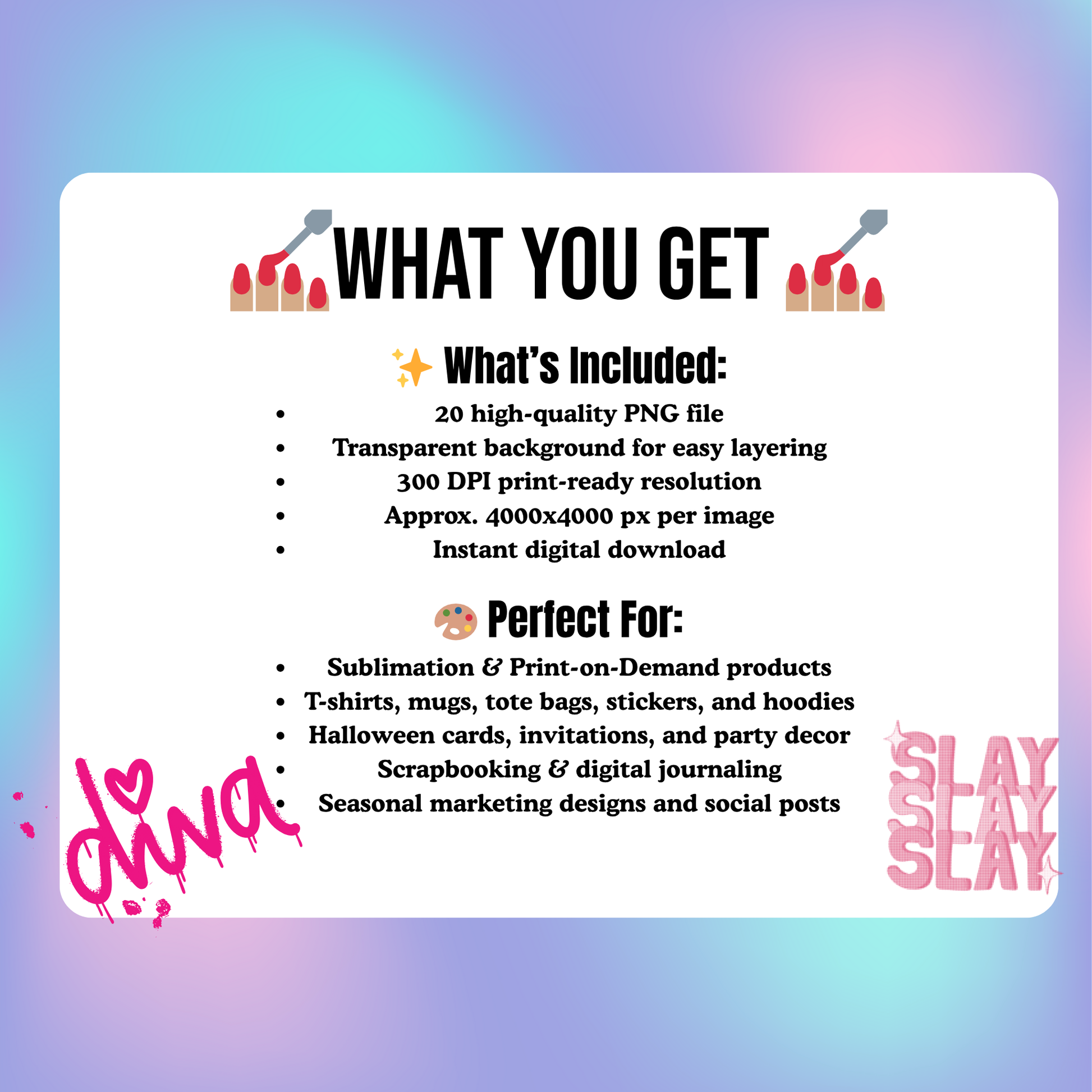 Bring back that 1990s Black Girl Magic — where every curl was laid, every lip gloss popped, and confidence was the accessory of the decade. The 1990’s Diva Glam Bundle is a stunning collection of 20 transparent PNGs capturing the essence of timeless Black beauty and high-fashion elegance.
