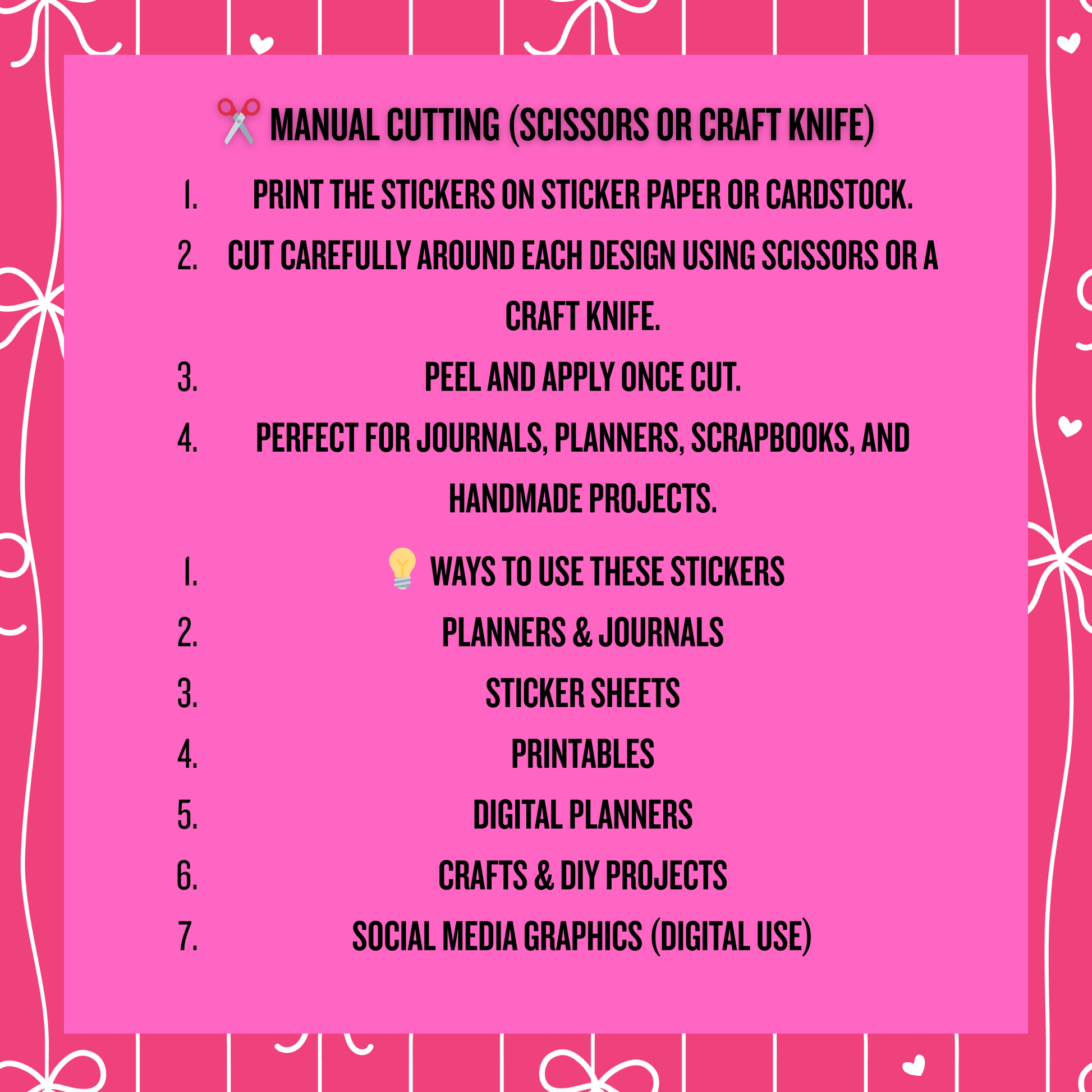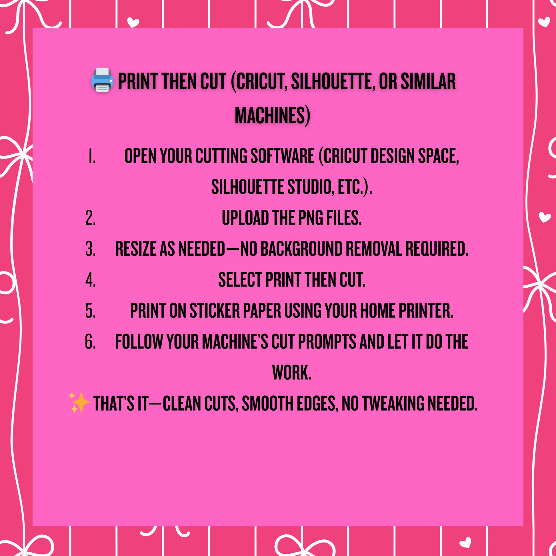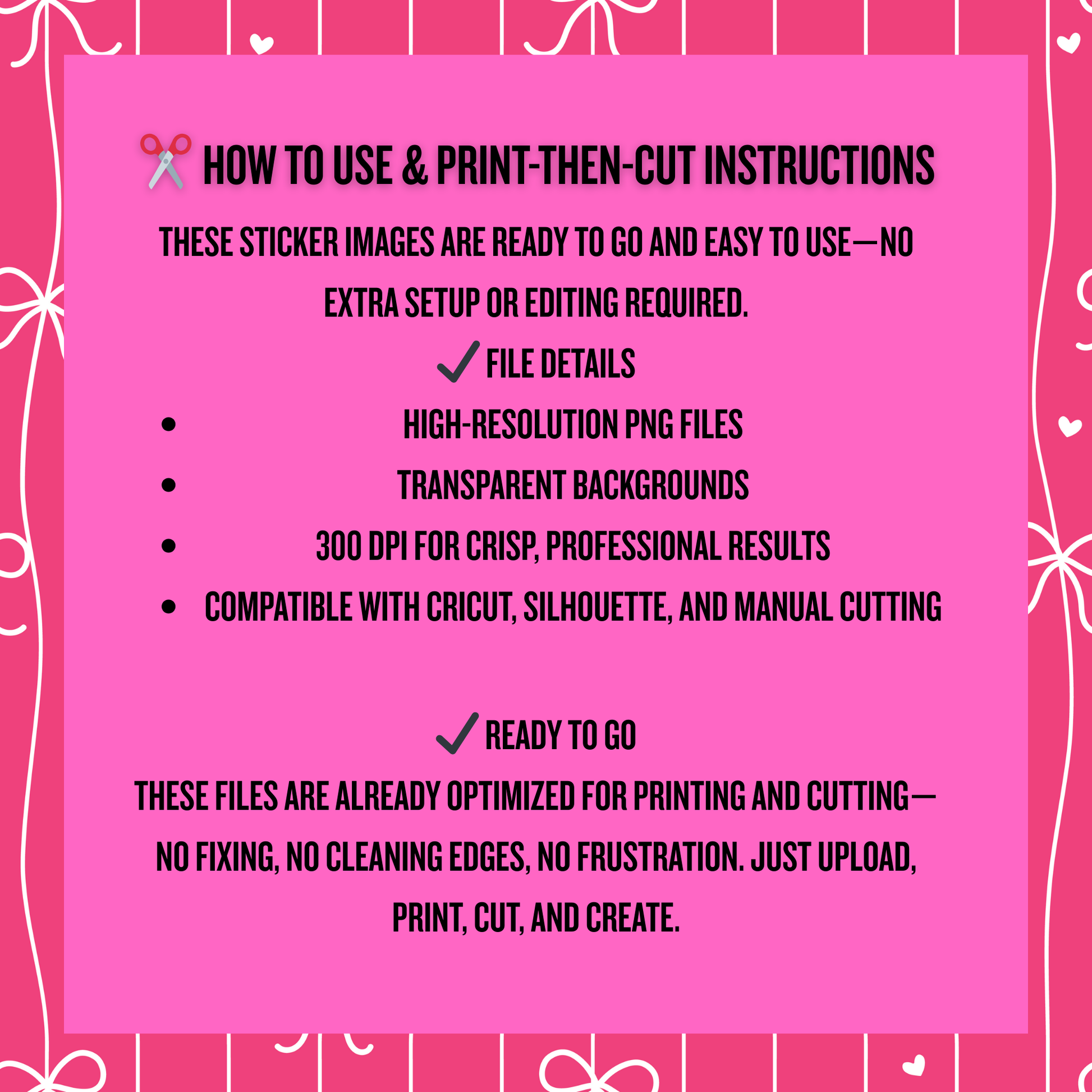 Each sticker is provided as a high-resolution transparent PNG, making them ideal for print-then-cut projects, digital planners, stickers, crafts, and social content. No background removal, no fixing edges—these files are ready to go.