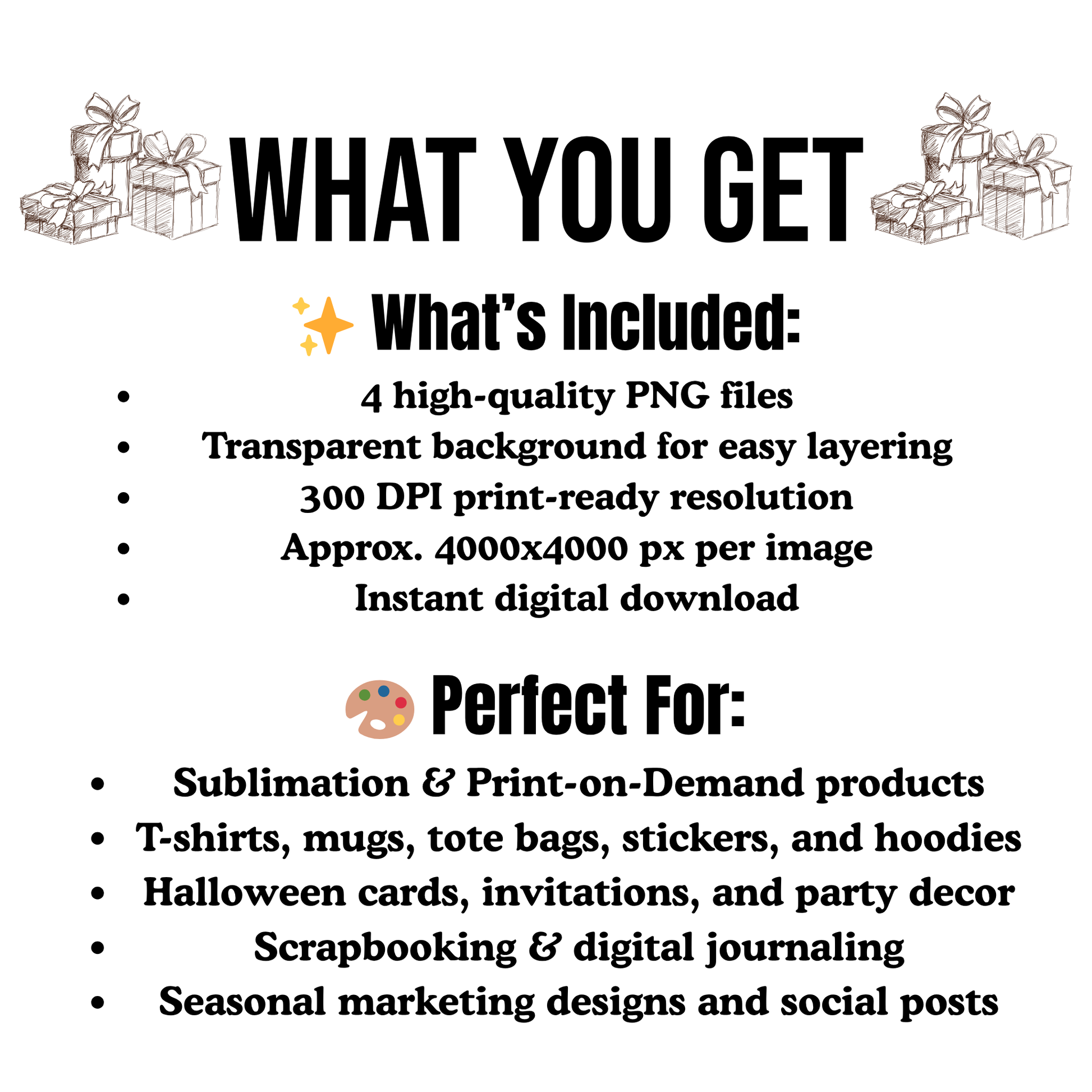Each file is high-quality (300 DPI) with a transparent background, making it easy to use on T-shirts, mugs, cards, stickers, and more.
