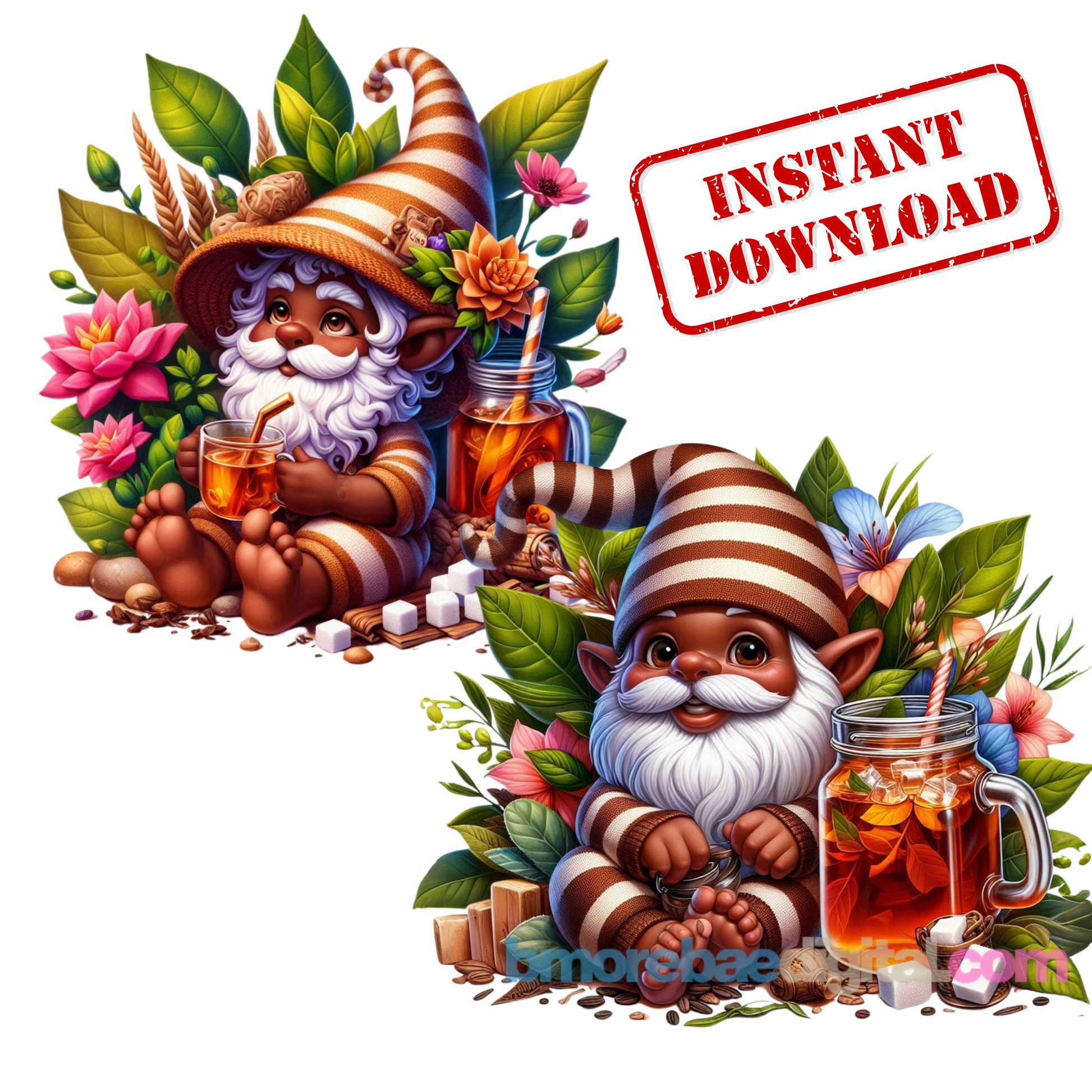 Sweet Tea Black Gnomes PNG Bundle | Afrocentric Summer Clipart | Southern Gnome Sublimation | Cute Melanin Art for Shirts, Tumblers & Decor