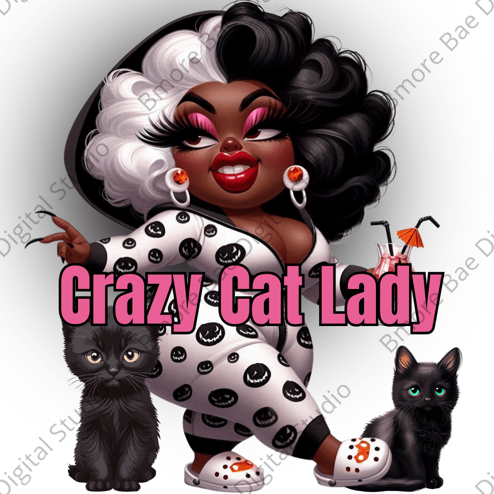A sassy, witchy Black girl serving pumpkin-print onesie, fluffy afro, glossy red lip, and white clogs—cocktail in hand and ready for spooky season! Perfect for stickers, shirts, mugs, tumblers, invites, planners, scrapbooking, and sublimation.
